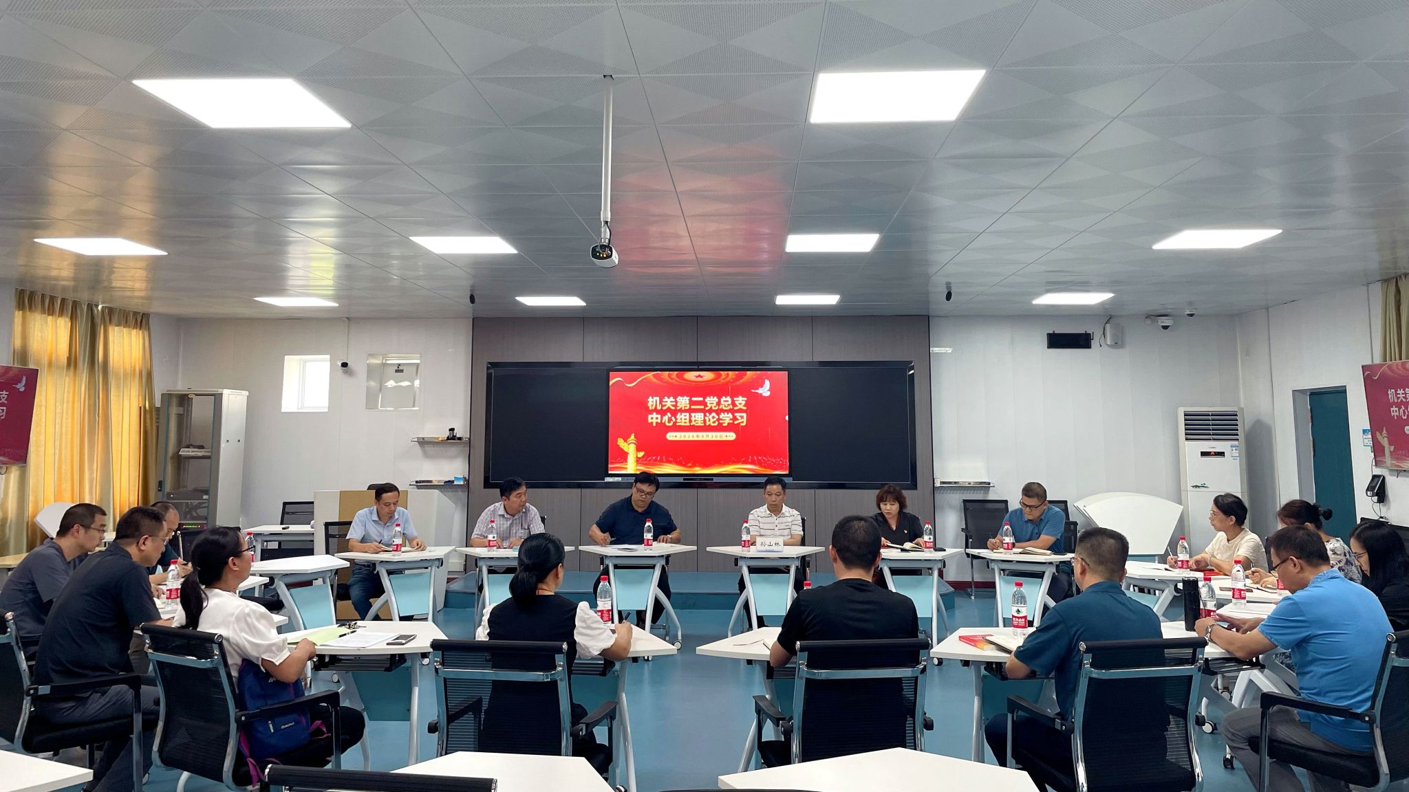近日,pa集团官网第二党总支在飞天楼402教室开展二级中心组理论学习。党总支委员、相关部门单位负责人参加学习,学校党委副书记孙山林到场指导。